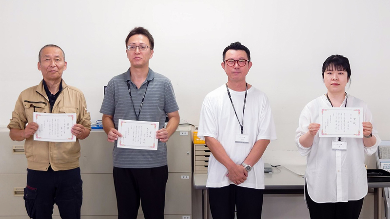 表彰式は朝礼の場で行われ、受賞者への賞品の授与を実施しました。