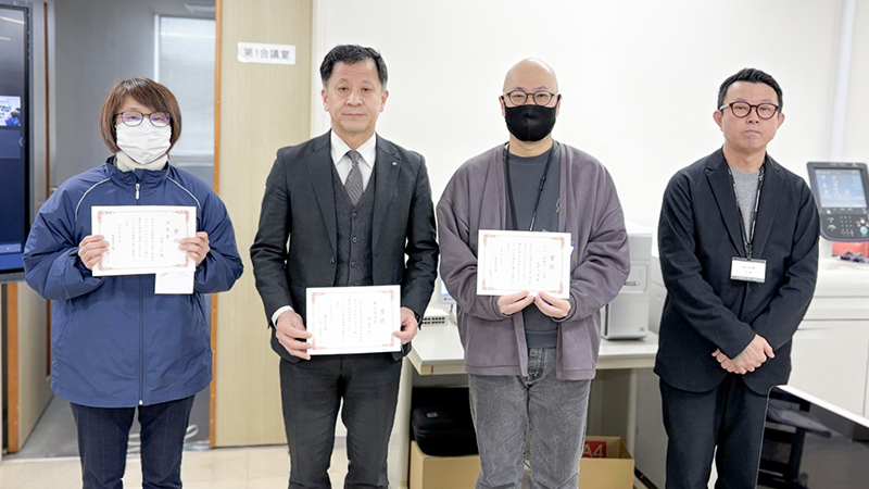表彰式は朝礼の場で行われ、受賞者への賞品の授与を実施しました。